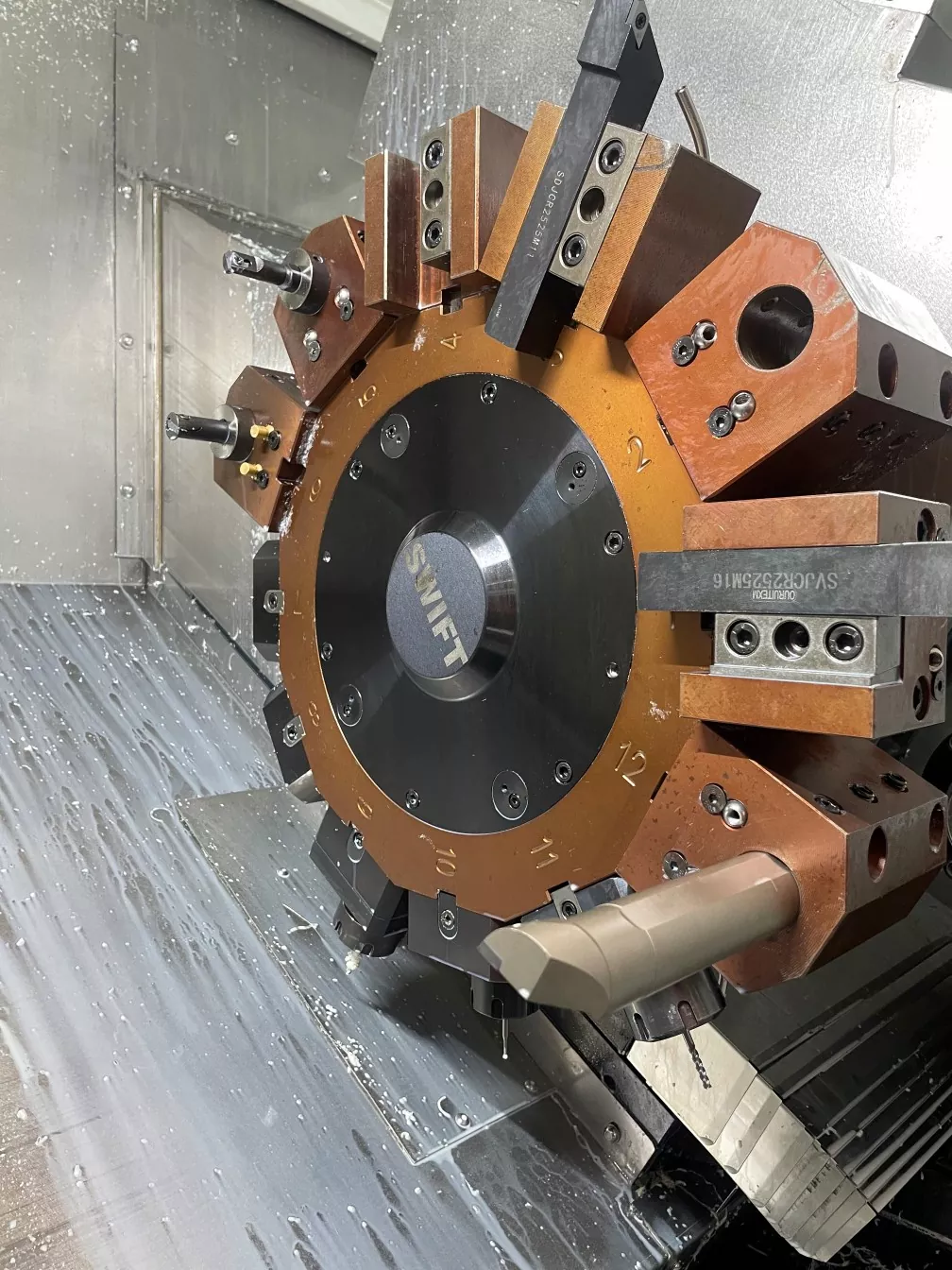 ابزارهای دستگاه CNC مرکب 46 چرخش و فرز ما از کنترل برجک برق محور Y واقعی برای انجام ماشینکاری قسمت پیچیده استفاده می کنند.
